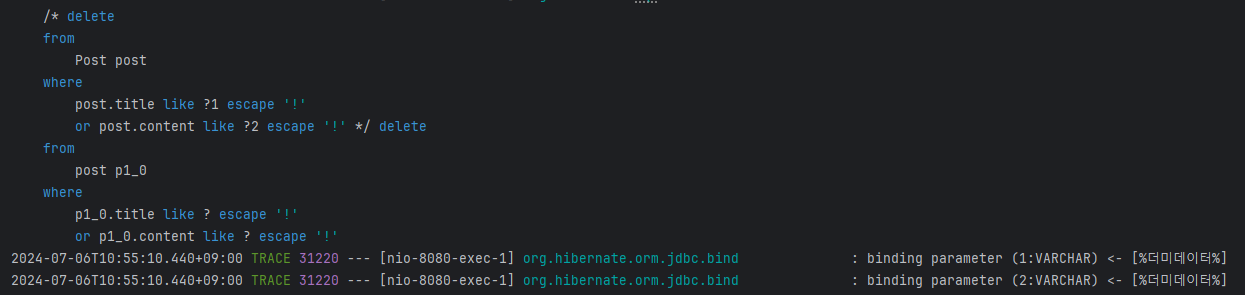 더미데이터가 삭제되는 쿼리문이 정상적으로 잘 작동하는것을 볼 수 있다.