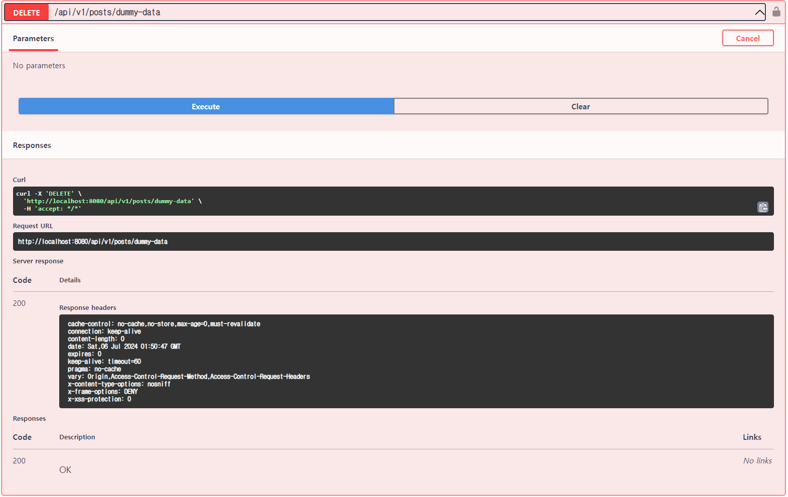 테스트가 끝난 후에는 더미데이터를 삭제하기 위해서