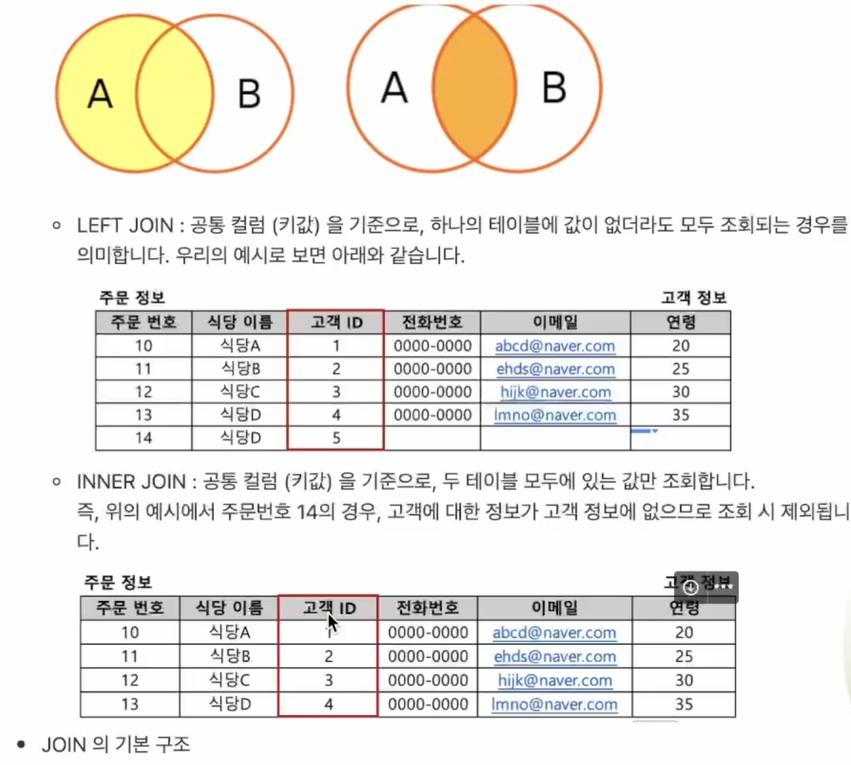 필요한 데이터가 서로 다른 테이블에 있을때는 JOIN을 사용한다
