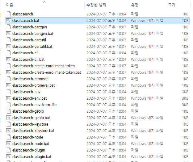 elasticsearch-8.14.3-windows-x86_64\elasticsearch-8.14.3\bin 경로에 있는 elasticsearch.bat 파일을 실행시켜 Elasticsearch 서비스를 실행할수 있다.