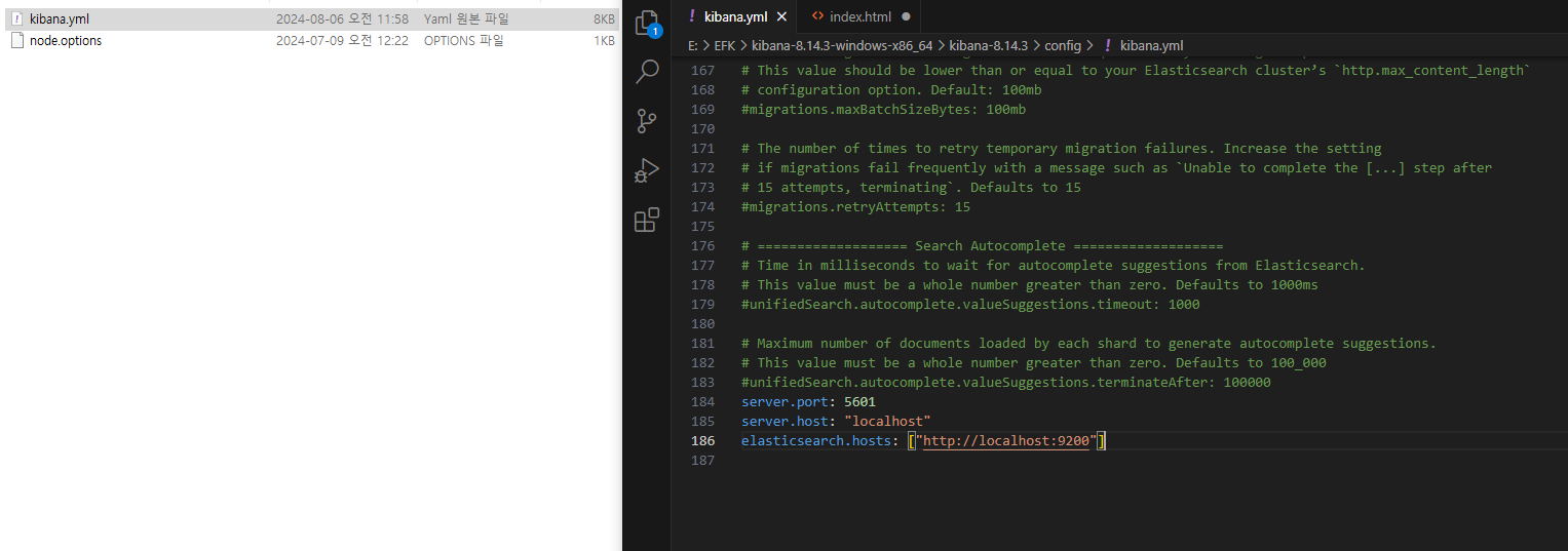 kibana-8.14.3-windows-x86_64\kibana-8.14.3\config 경로에 있는 kibana.yml에 설정 추가
