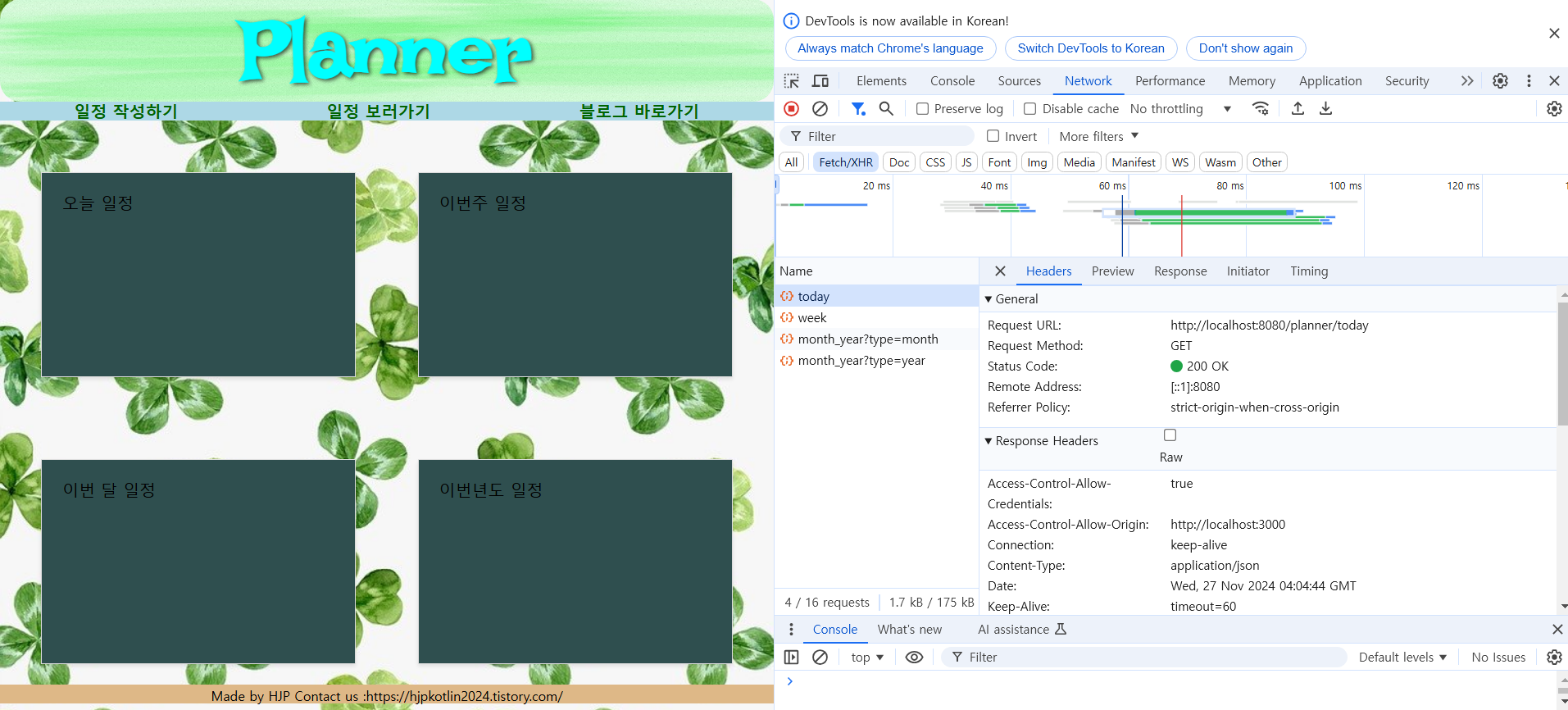 | 개인프로젝트 API와 연결할 간단한 웹페이지 만들기(3)-일정 작성하기 페이지 (2) | 2024.11.29 |
