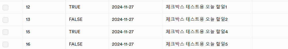 오늘 할일 목록에서 체크박스에 체크를 하면 check=false에서 check=ture값으로 변경하여 서버로 값을 보내고 해당 list에서 목록을 제거하고자 한다.