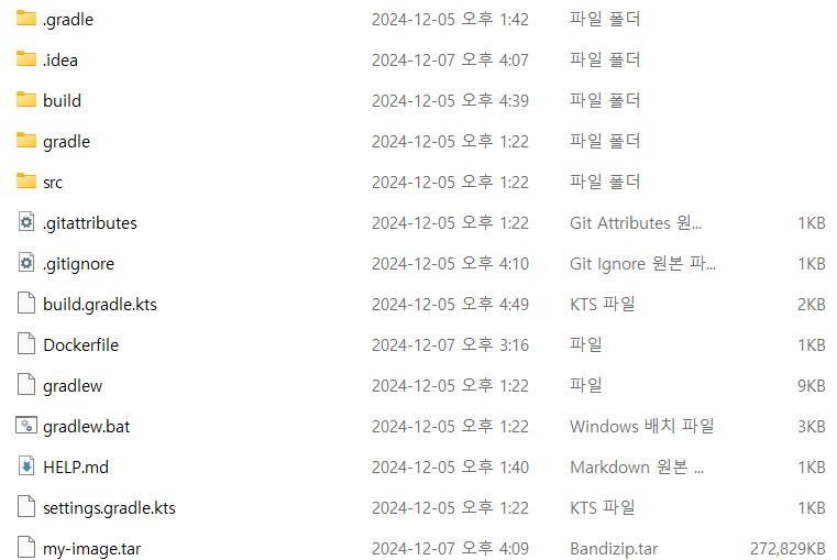 맨 아래에 my-image.tar 파일이 생성된것을 확인할 수 있다.