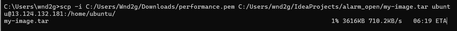 scp -i C:/Users/Wnd2g/Downloads/performance.pem C:/Users/wnd2g/IdeaProjects/alarm_open/my-image.tar ubuntu@13.124.132.181:/home/ubuntu/