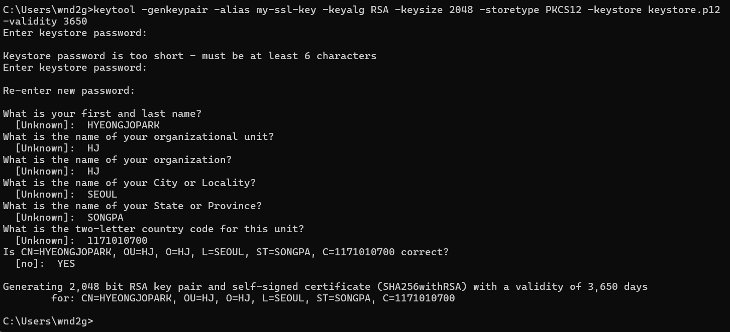 keytool -genkeypair -alias my-ssl-key -keyalg RSA -keysize 2048 -storetype PKCS12 -keystore keystore.p12 -validity 3650