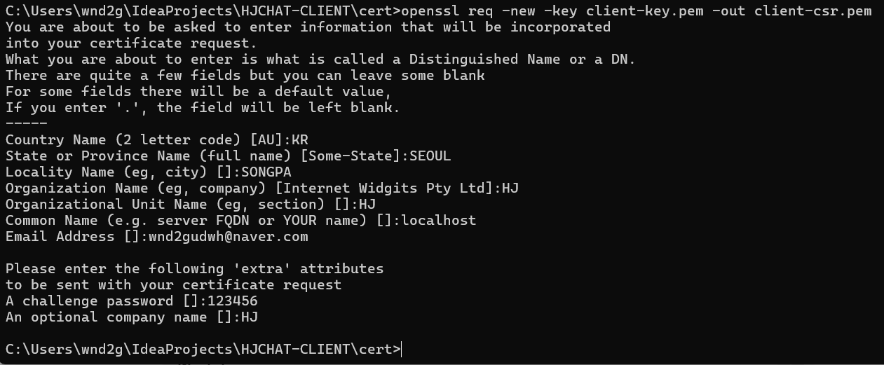 openssl req -new -key client-key.pem -out client-csr.pem