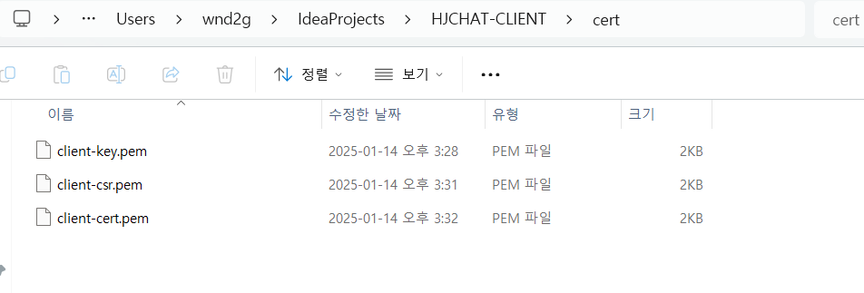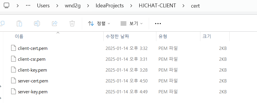 cert 폴더 내 파일이 생성된것을 확인