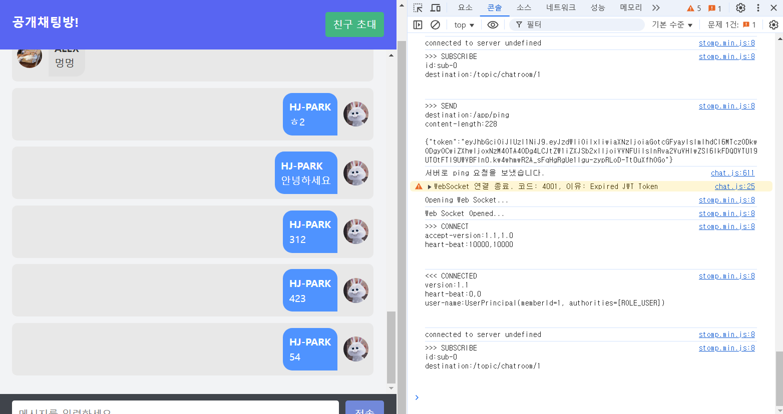 배포된 사이트에서 채팅 기능을 사용중 해당 오류가 발생하였다. 바로 내가 보낸 메세지를 입력해도 서버에는 도착하지만 실제로 메세지가 전달되지 않는것이다.