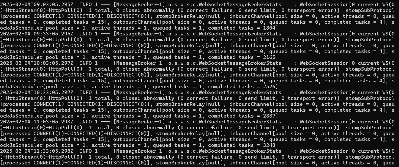 원인: 내가 사용하는 AWS 프리티어가 제공하는 t2.micro 인스턴스는 CPU, RAM, 네트워크 대역폭이 제한되기 때문에 KAFKA와 WEB-SOCKET, SPRING BOOT 서버를 실행할 경우에 메모리 부족 또는 네트워크 과부화로 인해서 서비스가 정상적으로 동작하지 않을수도 있다고 한다.