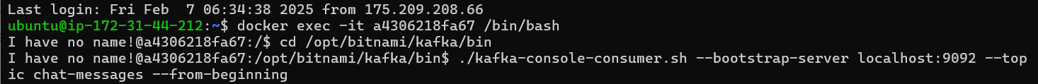 ./kafka-console-consumer.sh --bootstrap-server localhost:9092 --topic chat-messages --from-beginning