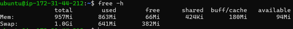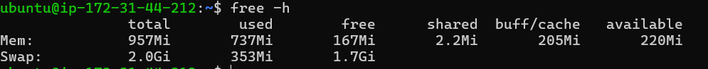 메모리가 매우부족할것으로 보여 Swap Memory를 2gb로 늘려줘야한다.(프리티어이기 때문에 메모리가 1gb로 제한됨)