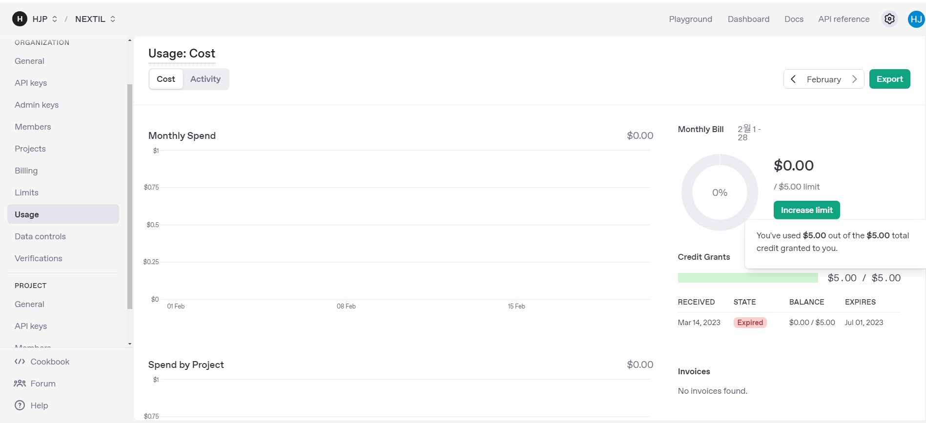 이제 5달러만큼 GPT의 기능을 사용할수 있게 되었다.