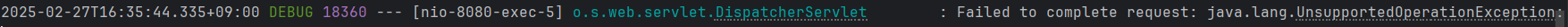 2025-02-27T16:35:44.335+09:00 DEBUG 18360 --- [nio-8080-exec-5] o.s.web.servlet.DispatcherServlet : Failed to complete request: java.lang.UnsupportedOperationException: JWT Claims instance is immutable and may not be modified.