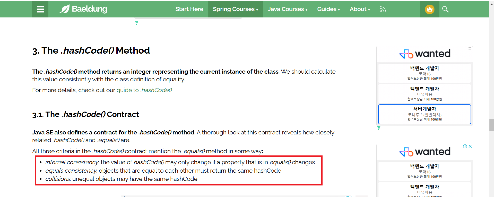 참고자료: https://www.baeldung.com/java-equals-hashcode-contracts