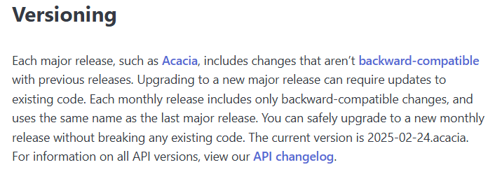 API 의 최신 버전은 2025-02-24 버전이므로 최신 버전 사용