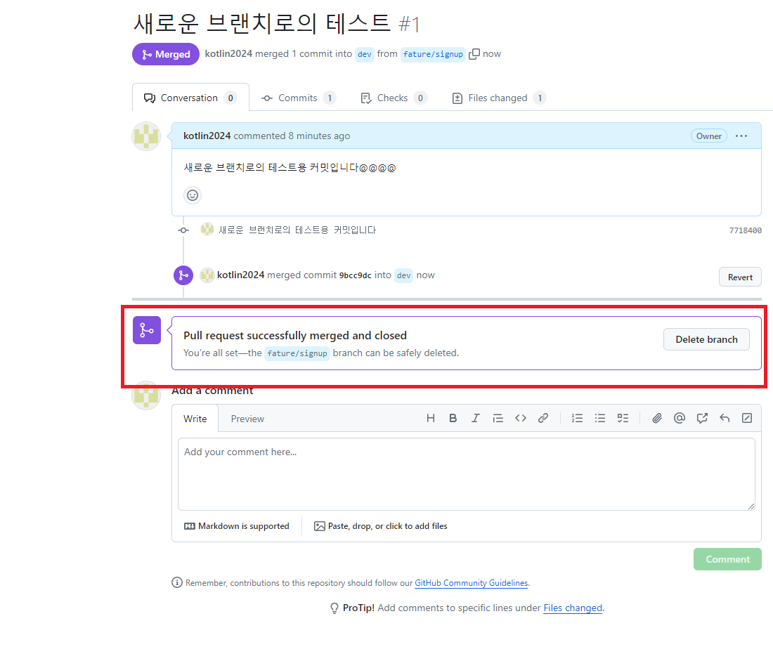 브랜치를 merge한 후에는 해당 브랜치를 삭제하는 것이 일반적이다. 이는 브랜치를 보다 깔끔하고 관리하기 쉽게 유지하기 위함이지만 특정 브랜치의 역할이나 작업을 계속해서 유지해야 한다면 삭제하지 않고 보관하는 것도 가능하다.