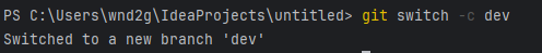 git switch -c dev: dev라는 이름의 새로운 branch를 생성하고 해당 branch로 이동