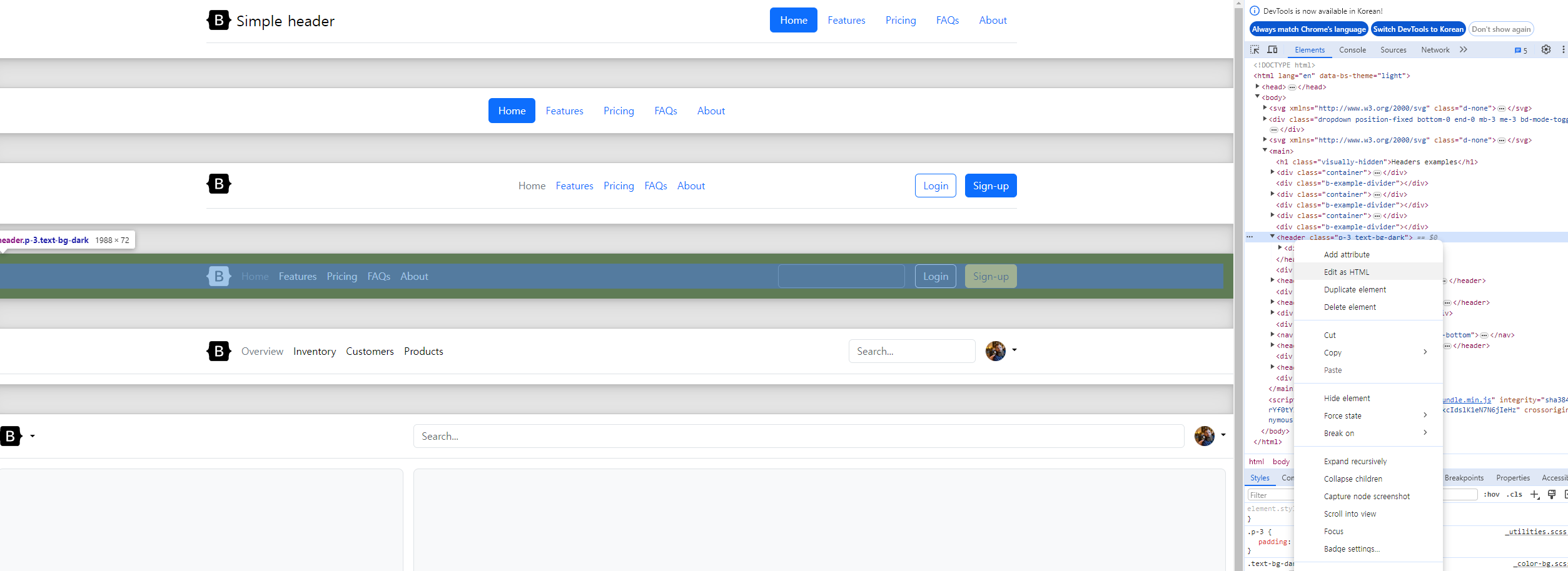 검사- 해당부분 우클릭- Edit as HTML로 활용할수있다