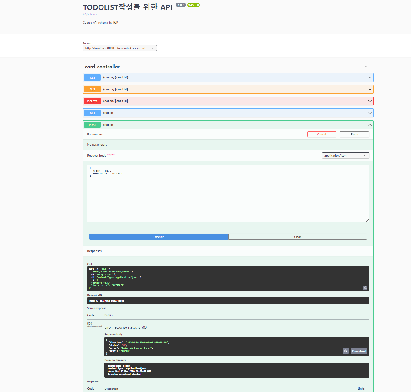 자신의 할일카드를 생성,조회,수정,삭제할 수 있는 API를 만들어보자