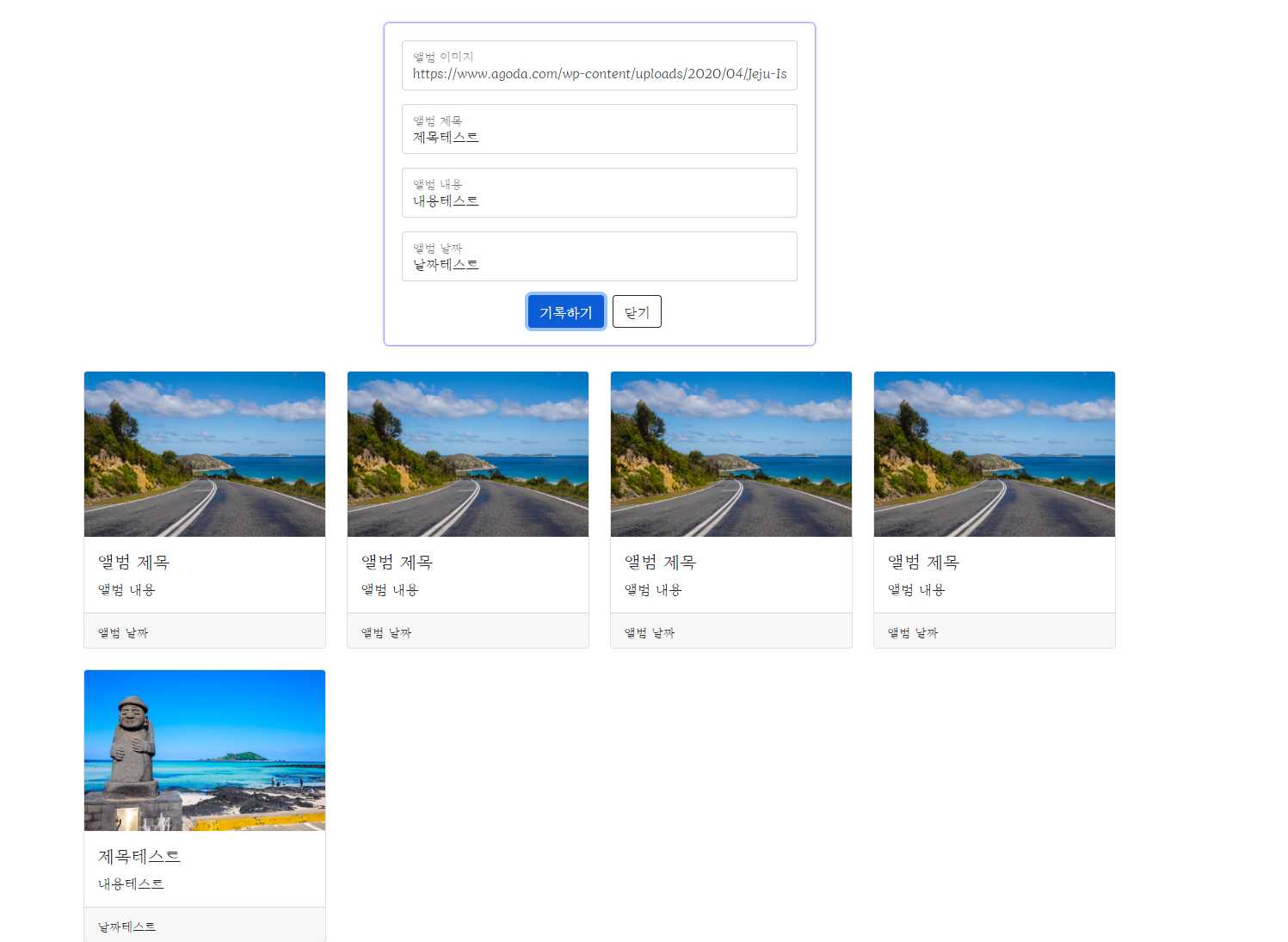 부트스트랩에서 가져왔던 카드 한개의 코드를 복사하여