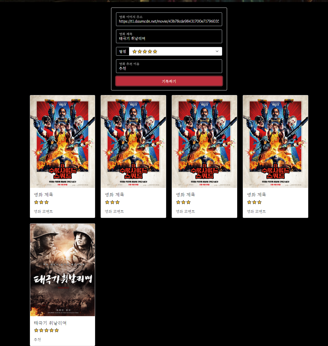 위의 코드는 id가 star인 value값들이 1,2,3,4,5로 되어있기때문에 ★표시를 표기하고싶다면