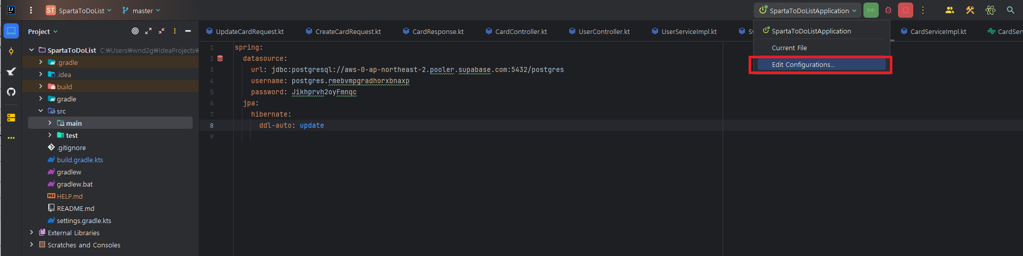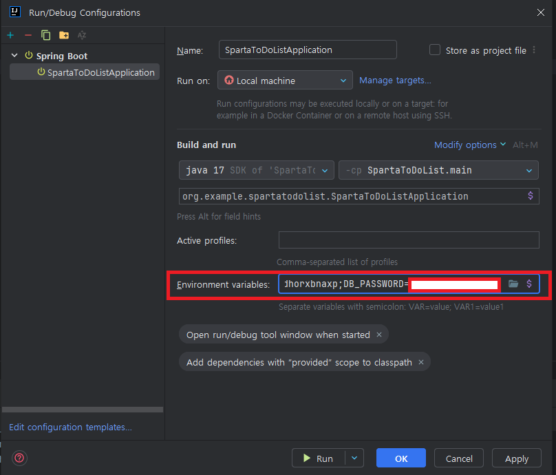 현재 application.yml 파일안에 중요한 정보들이 들어가 있는 상태인데 GitHub에 코드를 공유할경우에 보안 문제가 발생할 수 있으니 이를 환경변수로 감추어보자