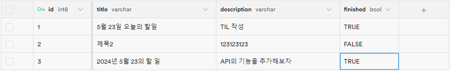 당연하게도 데이터베이스에 완료라는 Column이 있어야 하는게 너무나도 당연하니 데이터베이스와 매핑이 되는 Entity의 card라는 테이블에 finsihed 라는 이름의 Column을 생성