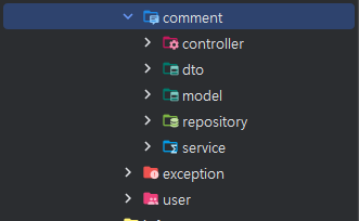 댓글기능을 추가하기 위해서 Card 패키지와 User 패키지 처럼 별도의 패키지를 만들어서 관리하자