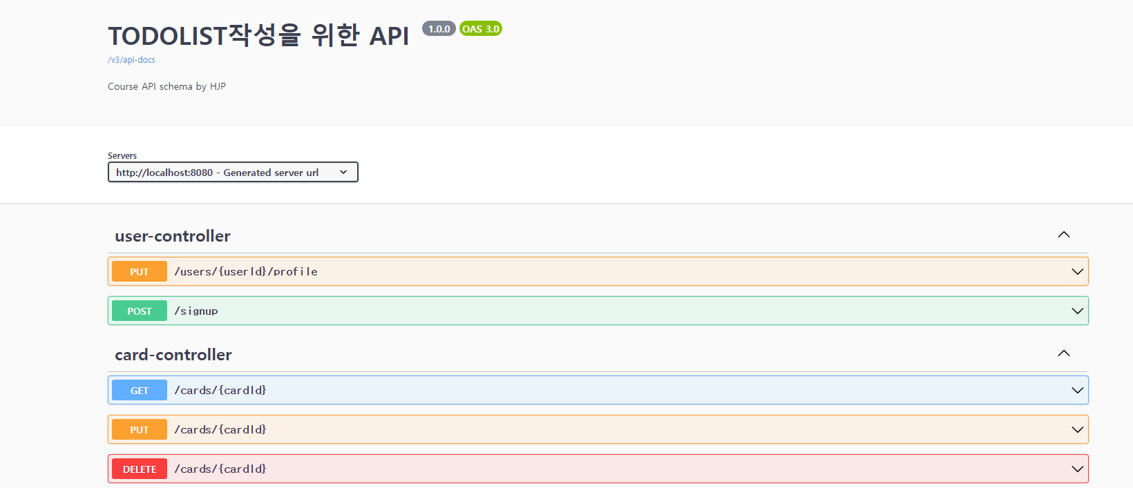 설정을 마치고 실행을 시킨뒤 swagger로 확인을 하면
