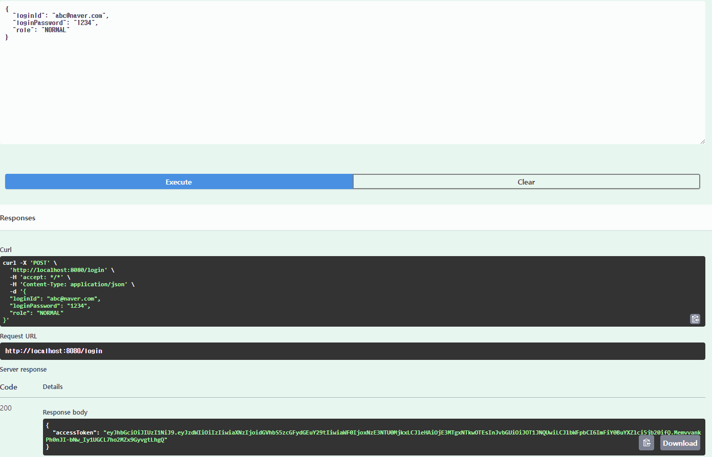 로그인 성공시 토큰이 잘 생성된것을 볼수있고