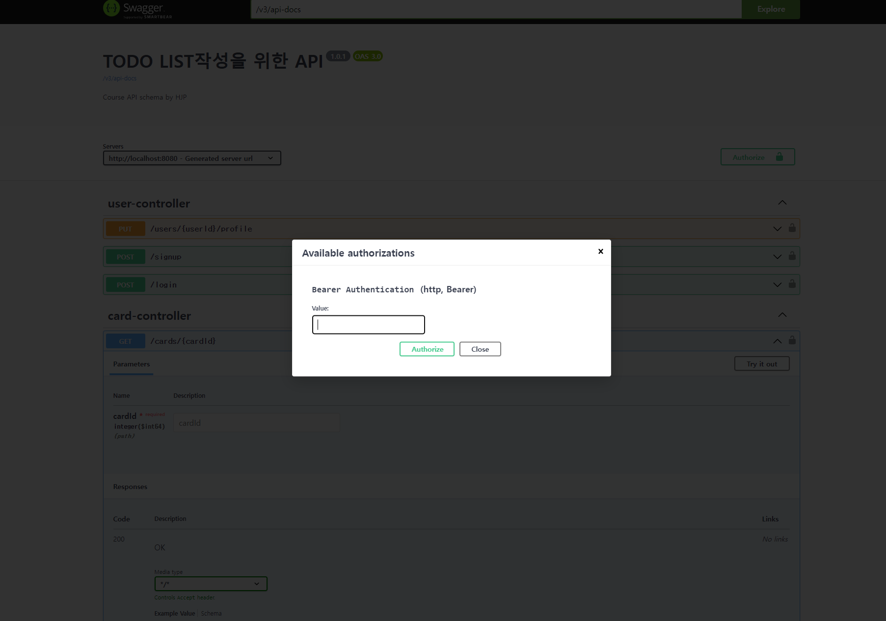 이로써 Swagger에서 인증,인가에 대한 테스트를 진행할 수 있게 되었다.