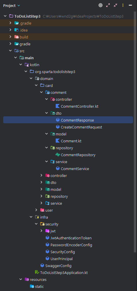 기존 할일 카드 목록과 댓글 작성의 CRUD 구현에 더해 로그인에 성공한 사용자만이 카드를 생성하거나 댓글을 작성할 수 있으며 로그인한 사용자가 본인이 작성한 카드 에대해서만 수정,삭제,에 대한 접근이 가능하고, 다른사람의 카드나 댓글에 대해서는 수정,삭제가 불가능하도록 한다.
