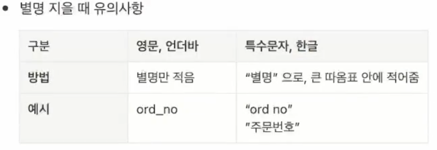 Select구문을 사용할때 원하는 별명을 만들어서 데이터를 불러올수 있다