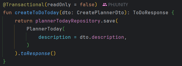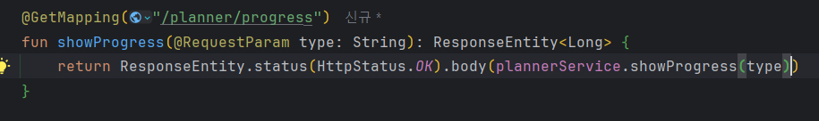 로직은 매우 간단하다. today면 today repository에서 쿼리문을 실행하고 그결과를 반환하고 month면 month repository에서 쿼리문을 실행하고 결과를 반환하는 형태로 설게하였다. 나중에 year나 month 혹은 다른형태로 추가할때는 else if문에 추가하는 식으로 할 수 있을것이다.