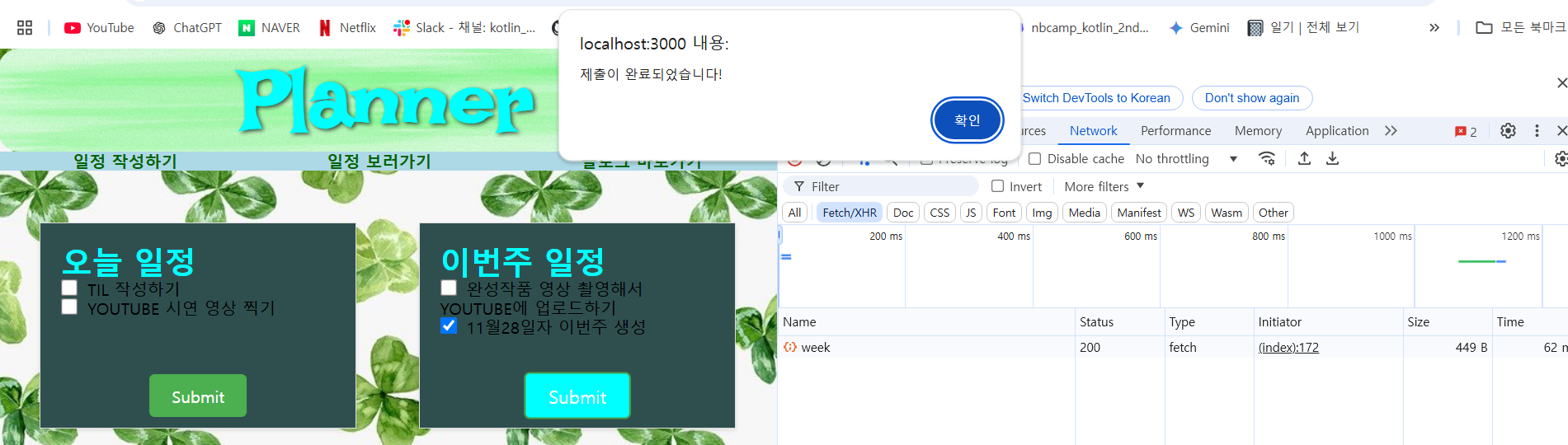 제출이 되었는지 확인하기 위해 알람추가 및 새로고침 추가